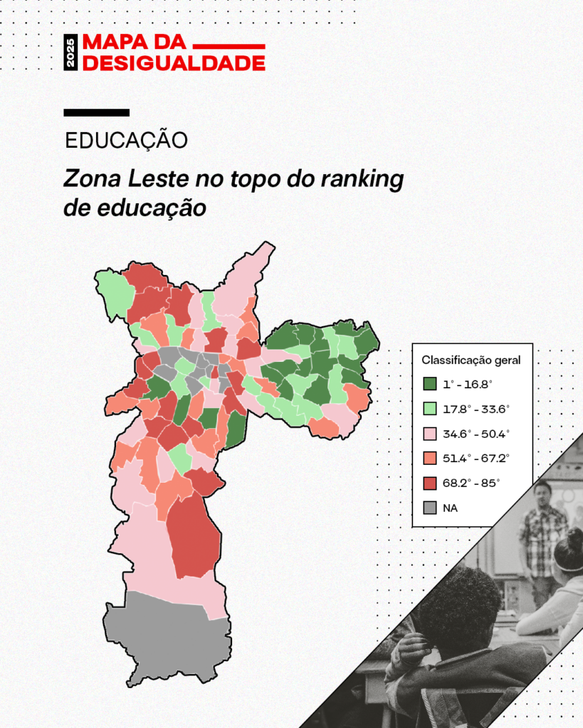 O Instituto Cidades Sustentáveis e a Rede Nossa São Paulo divulgam novos dados do Mapa da Desigualdade de São Paulo nas áreas de educação, segurança pública, esportes e infraestrutura digital.